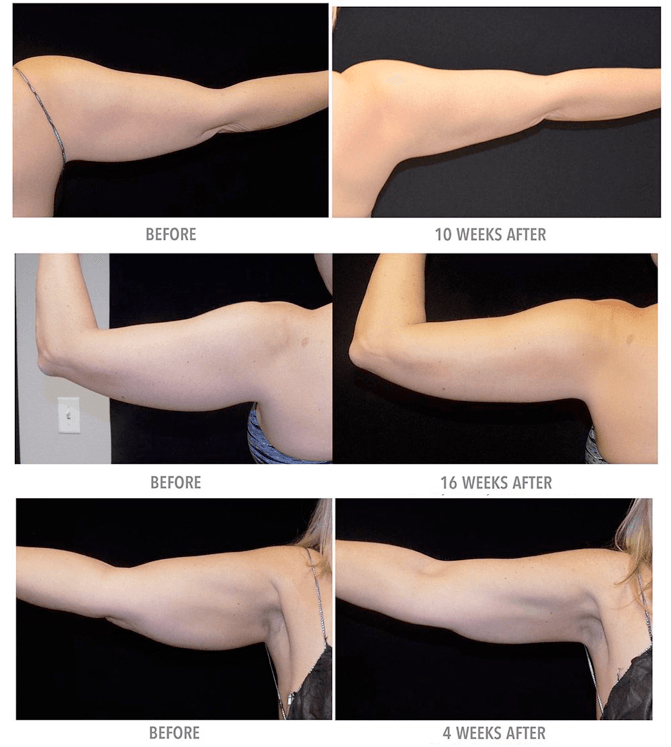 Measurements and photos are compared to assess fat reduction.
